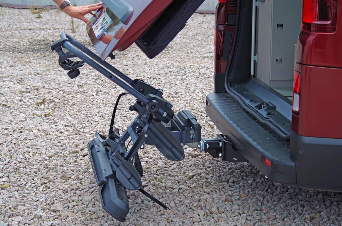 Découvrez les types de fixation pour portes vélo et leurs avantages : sur charnières des portes arrière, sous le châssis du fourgon ou sur la boule d'attelage.